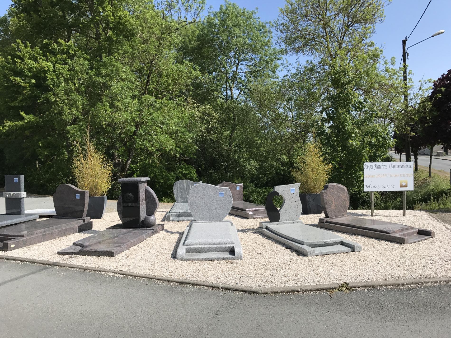 Il existe différents types de monuments funéraires pour l’inhumation ou la crémation. La majorité d’entre eux sont en granit ou en pierre. Les monuments pour l’inhumation sont destinés à être placés sur une sépulture pleine terre ou sur un caveau. Les monuments cinéraires (pour les urnes) positionnés sur la terre existent également.