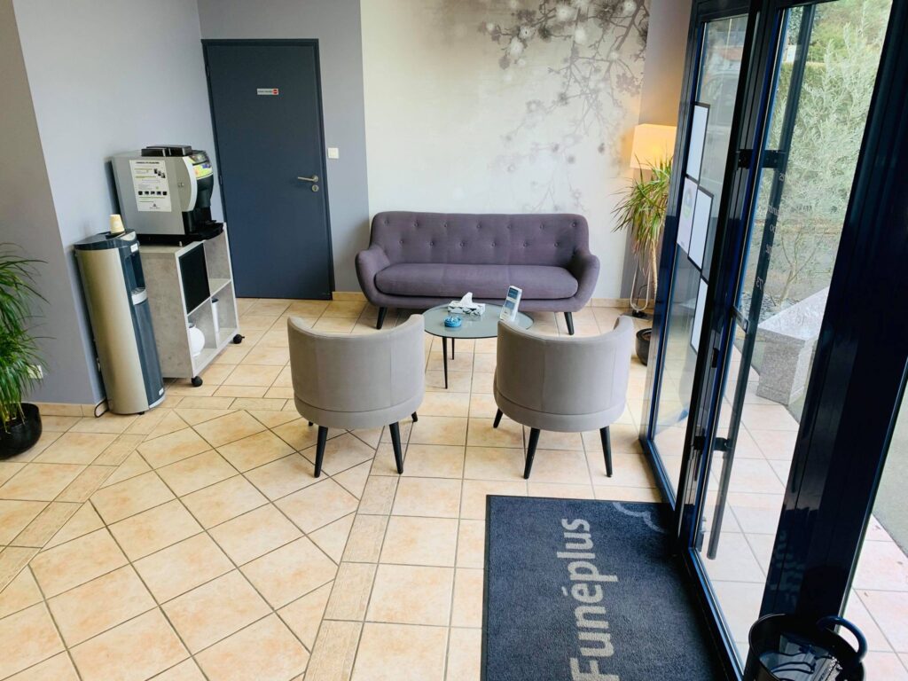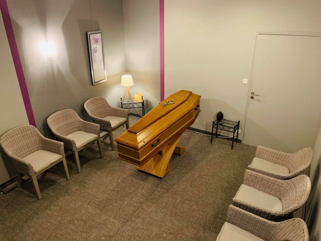 - Mise à disposition d’un salon privé (chambre funéraire) pour présenter le défunt, se recueillir et réunir les proches avec décoration funéraire